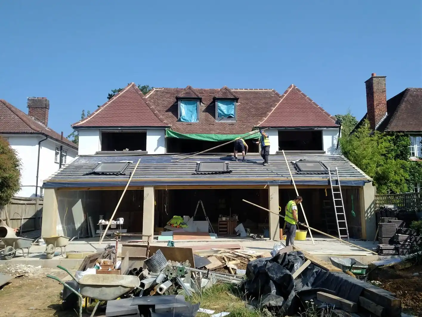 The client wanted a full width, single storey extension and two double storey extensions to the back of their home with a garden update. This was a huge brief that we were very happy to rise to the challenge of!
